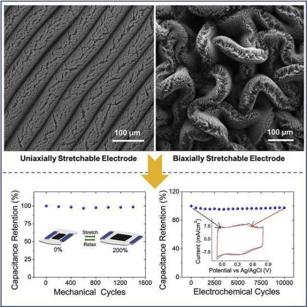 "We still have some work to do for building a complete stretchable electronics system," Cao said. "The supercapacitor demonstrated in this paper doesn't go as far as we want it to yet. But with this foundation of a robust stretchable supercapacitor, we will be able to integrate it into a system that consists of stretchable wires, sensors and detectors to create entirely stretchable devices."